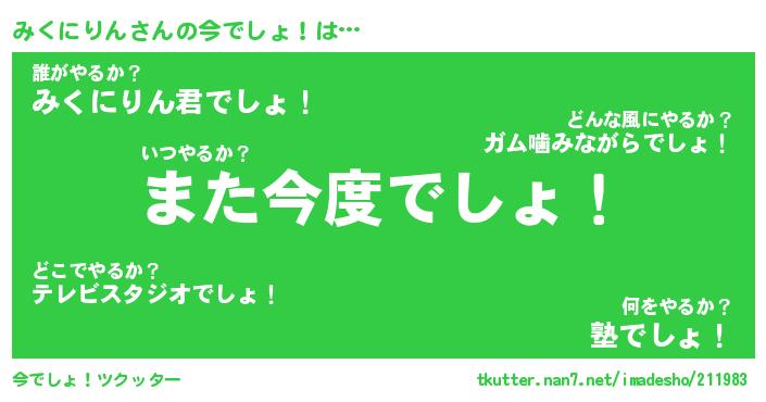 | 胡散臭い通販商品みたいなあだ名 | 『億万長者になれるブレスレット…その名も「みくにりん」』 |
