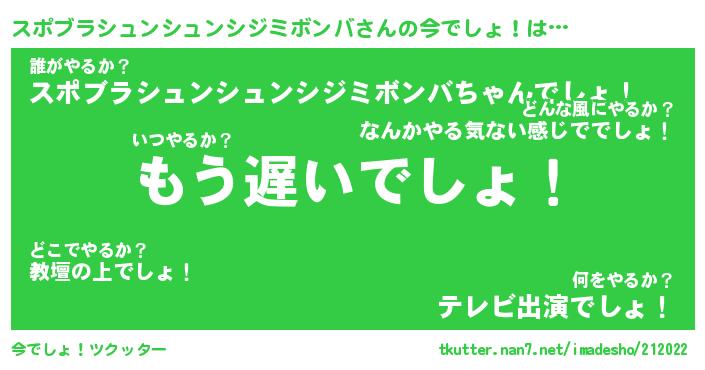 | ことわざ | 2階から目薬『2階からスポブラシュンシュンシジミボンバ』 |