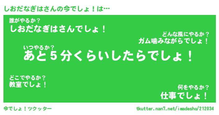 | 料理風あだ名 | 『節約★しおだなぎはと油揚げの玉子丼』 |