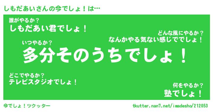| ヘコむあだ名 | 『しもっふぃ~』『豆乳』『しもっ子』 |