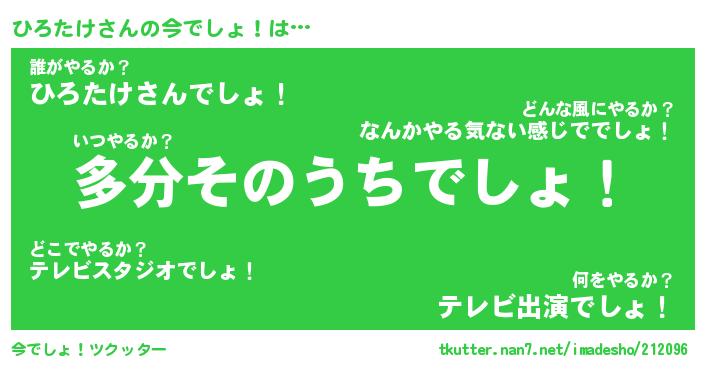 | 恥ずかしいあだ名 | 『プリティーひろたけ』『ひろっちょ』 |