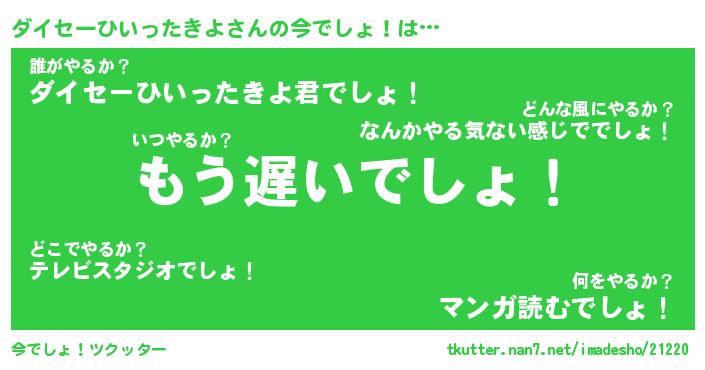 | ヘコむあだ名 | 『ダイっふぃ~』『豆乳』『ダイっぺ』 |