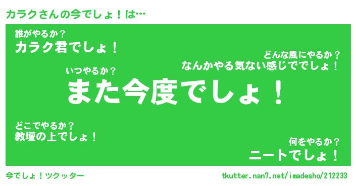 | ピコ太郎風あだ名 | 『カコ六郎』『ピカ二郎』『カラ次郎』 |