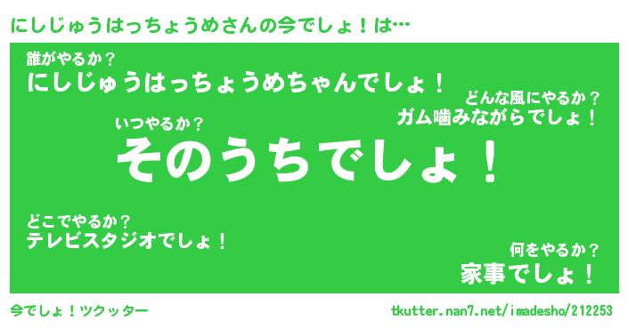 | 2回繰り返すあだ名 | 『にしにし』『ににしし』『うねうね』 |