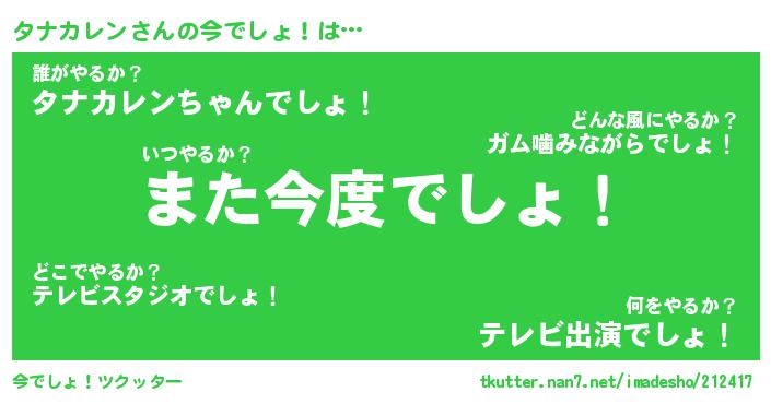 | ヘコむあだ名 | 『タナもー』『レバニラ』 |