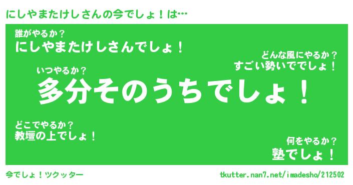 | 男性向けラノベタイトル風あだ名 | 『にしやまたけしの憂鬱』 |