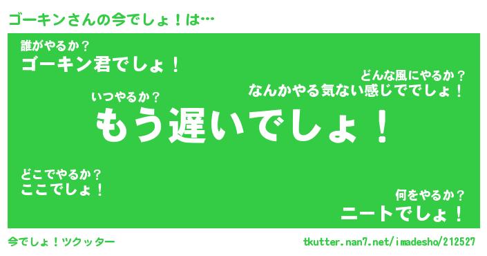 | 料理風あだ名 | 『節約★ゴーキンと油揚げの玉子丼』 |
