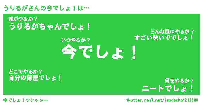 | 男性向けラノベタイトル風あだ名 | 『うりるがの憂鬱』 |