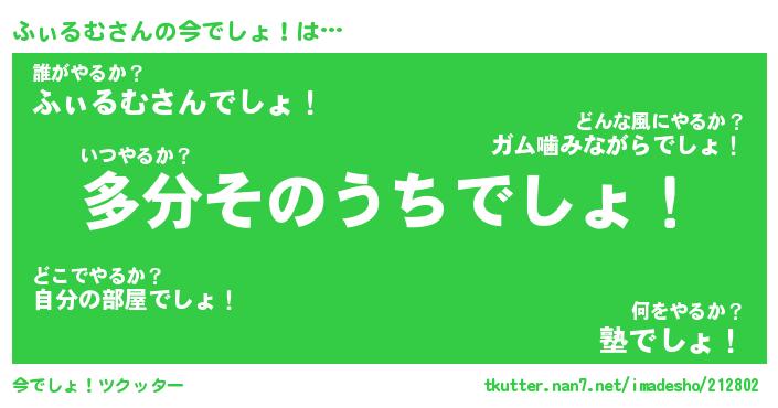 | 男性向けラノベタイトル風あだ名 | 『ふぃるむの憂鬱』 |