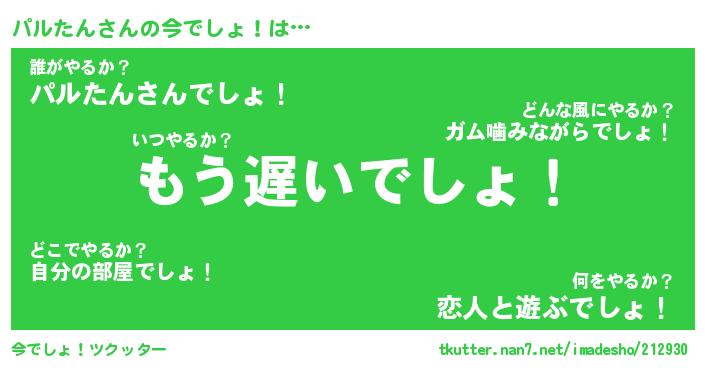 | 意味不明あだ名 | 『ペロリンパルたん』『永久保存パルたん』 |