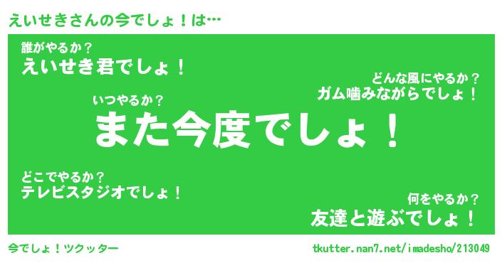 | 肩書あだ名 | 『えいせきCEO』『えいせき総理大臣』 |