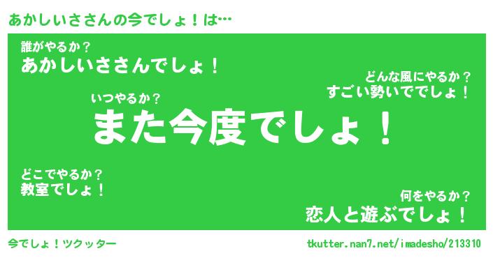 | ヒーロー風カッコイイあだ名 | 『スーパーアカシイサ』『天弓騎士アカ』 |