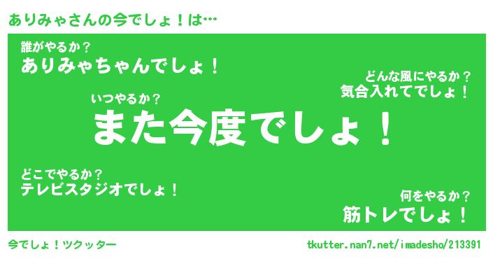 | 意味不明あだ名 | 『ペロリンありみゃ』『永久保存ありみゃ』 |