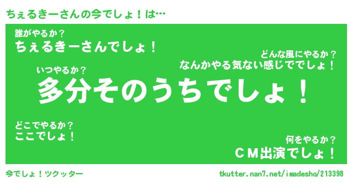 | 肩書あだ名 | 『ちぇるきー店長』『ちぇるきー総理大臣』 |