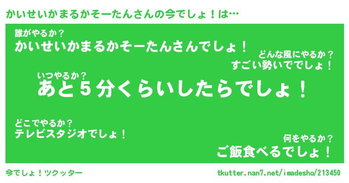 | 肩書あだ名 | 『かいせいかまるかそーたん御曹司』 |