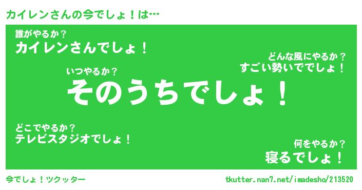 | 肩書あだ名 | 『カイレン店長』『カイレン総理大臣』 |