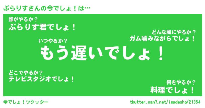 | 意味不明あだ名 | 『ペロリンぶらりす』『永久保存ぶらりす』 |