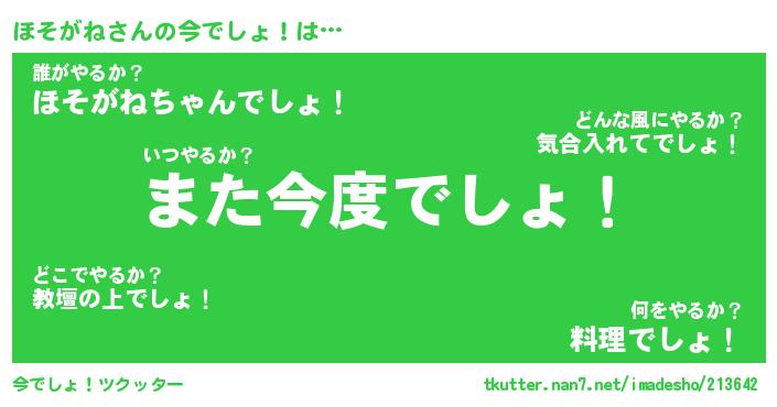 | 意味不明あだ名 | 『ペロリンほそがね』『永久保存ほそがね』 |