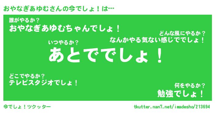 | ヘコむあだ名 | 『おやもー』『酢こんぶ』『おや太郎』 |