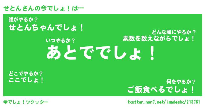 | 2回繰り返すあだ名 | 『せとせと』『せせとと』『ぬぷぬぷ』 |