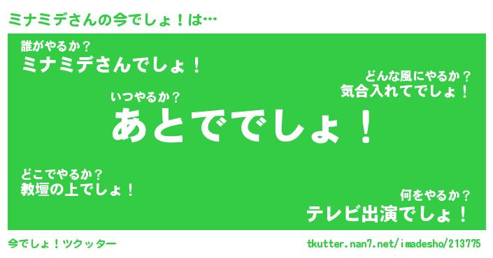 | ヒーロー風カッコイイあだ名 | 『スーパーミナミデ』『銀牙騎士ミナ』 |
