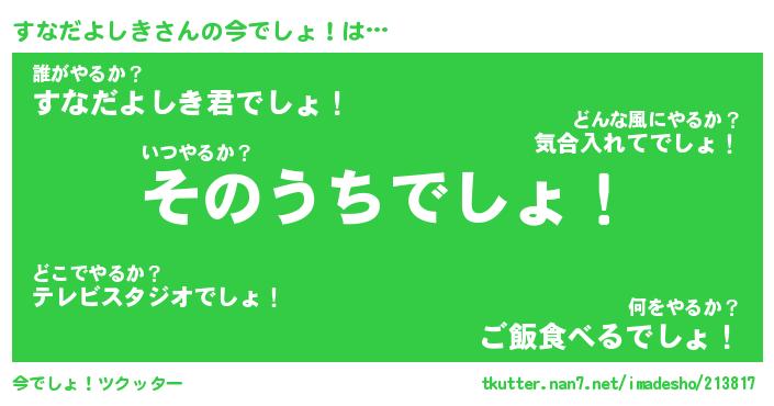 | ヘコむあだ名 | 『すなにー』『豆乳』『すなぷりん』 |