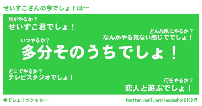 | 意味不明あだ名 | 『ペロリンせいすこ』『永久保存せいすこ』 |