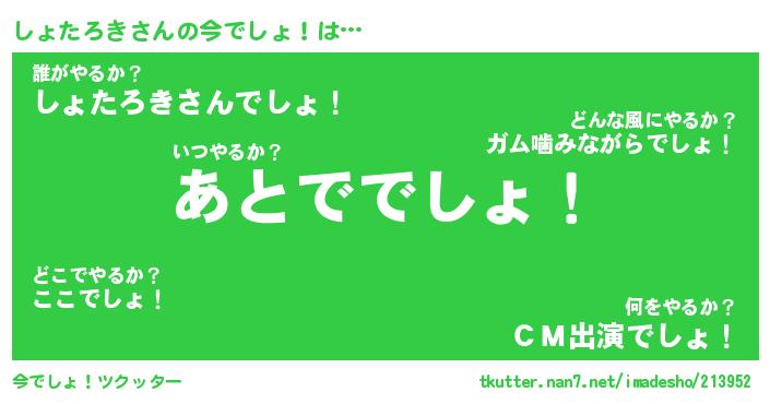 | 恥ずかしいあだ名 | 『プリティーしょたろき』『しょっちょ』 |