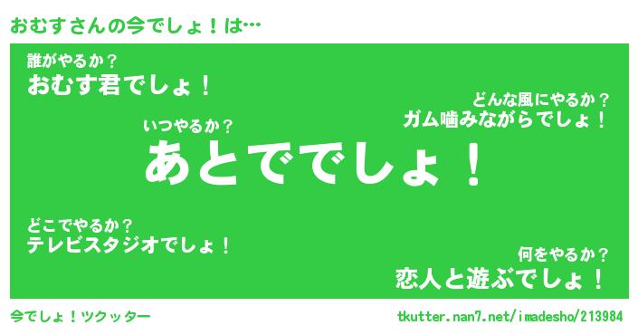 | ヘコむあだ名 | 『おむにゅー』『豆乳』『おむ太郎』 |