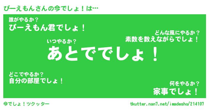 | 料理風あだ名 | 『節約★ぴーえもんと油揚げの玉子丼』 |