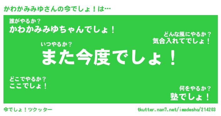 | 伝説のあだ名 | 『封印されし竜騎士かわかみみゆ』 |