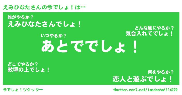 | 恥ずかしいあだ名 | 『プリティーえみひなた』『えみっちょ』 |