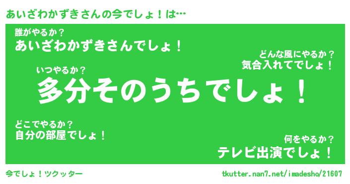 | 男性向けラノベタイトル風あだ名 | 『あいざわかずきの憂鬱』 |
