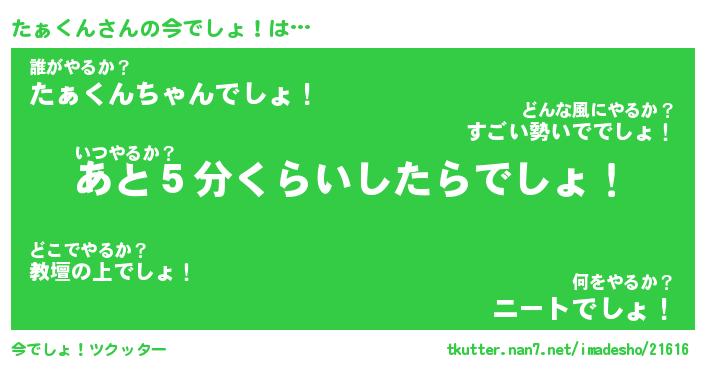 | ヒーロー風カッコイイあだ名 | 『スーパータァクン』『幻影騎士タァ』 |