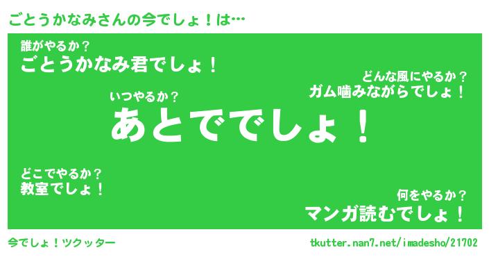 | ピコ太郎風あだ名 | 『ゴコ四郎』『ピゴ史郎』『ゴト次郎』 |