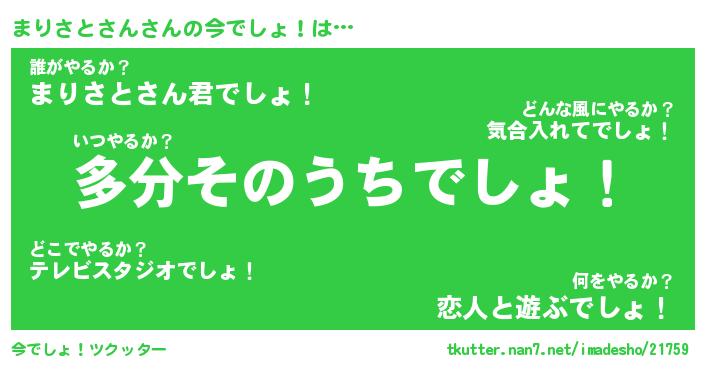 | 恥ずかしいあだ名 | 『プリティーまりさとさん』『まりっちょ』 |