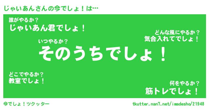 | 男性向けラノベタイトル風あだ名 | 『じゃいあんの憂鬱』 |