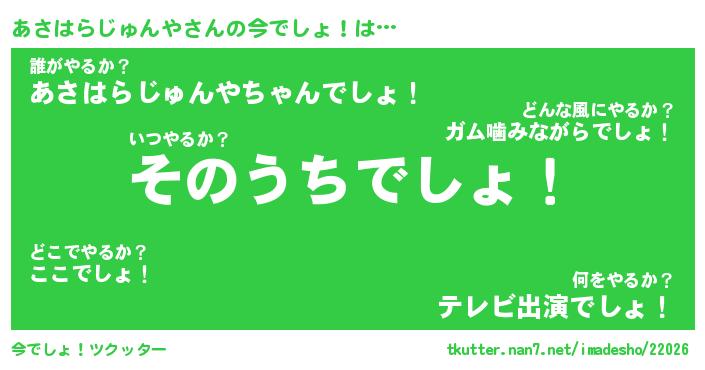 | 伝説のあだ名 | 『伝説のスナイパーあさはらじゅんや』 |