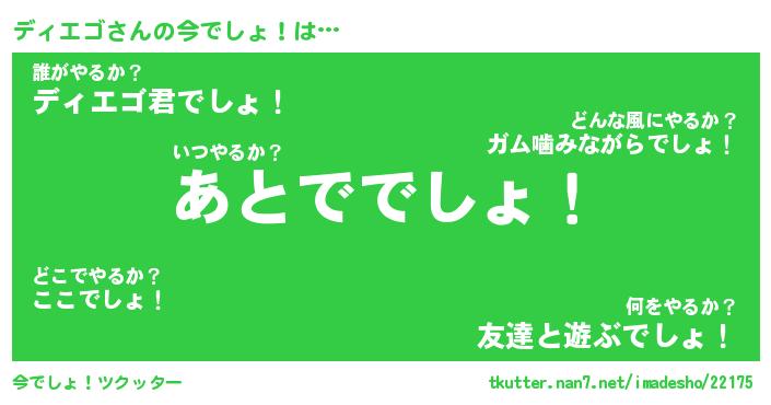 | 意味不明あだ名 | 『ペロリンディエゴ』『永久保存ディエゴ』 |