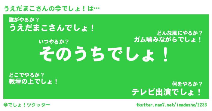 | 肩書あだ名 | 『うえだまこ御曹司』『うえだまこ塾長』 |
