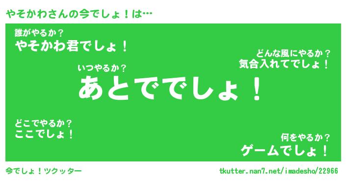 | ヘコむあだ名 | 『やそもー』『豆乳』『やそお』 |