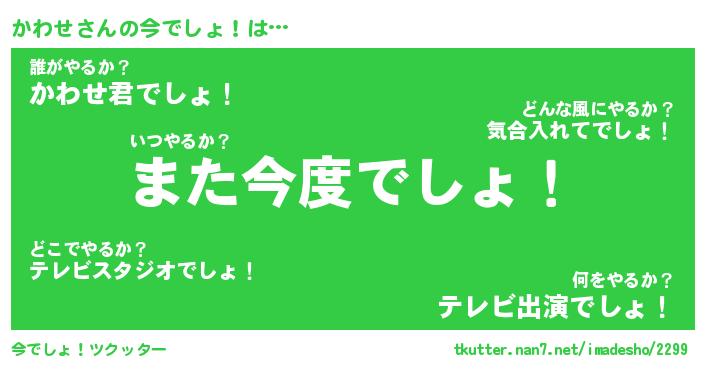 | 意味不明あだ名 | 『ペロリンかわせ』『かわせフォーエバー』 |