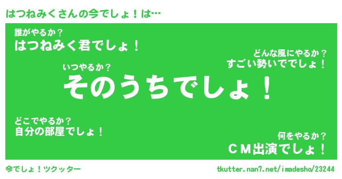 | 胡散臭い通販商品みたいなあだ名 | 『必ず成功するブレスレット…その名も「はつねみく」』 |