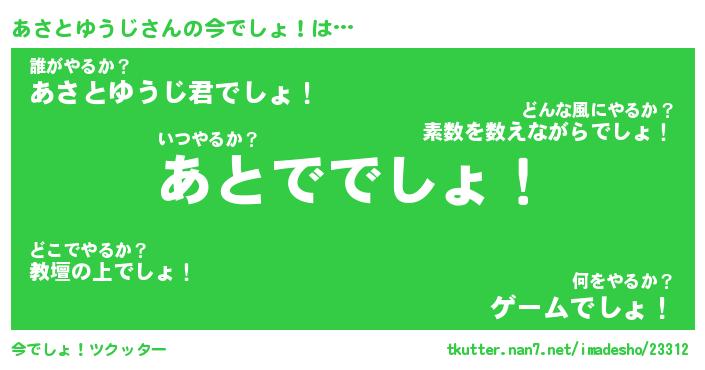 | ヒーロー風カッコイイあだ名 | 『スーパーアサトユウジ』『幻影騎士アサ』 |