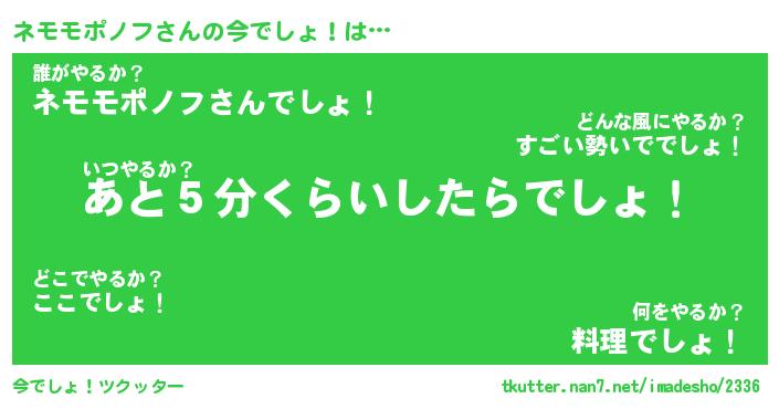 | 料理風あだ名 | 『節約★ネモモポノフと油揚げの玉子丼』 |