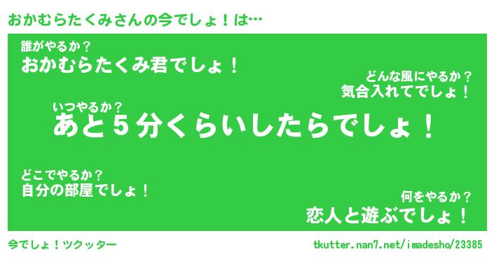 | 胡散臭い通販商品みたいなあだ名 | 『億万長者になれるブレスレット…その名も「おかむらたくみ」』 |