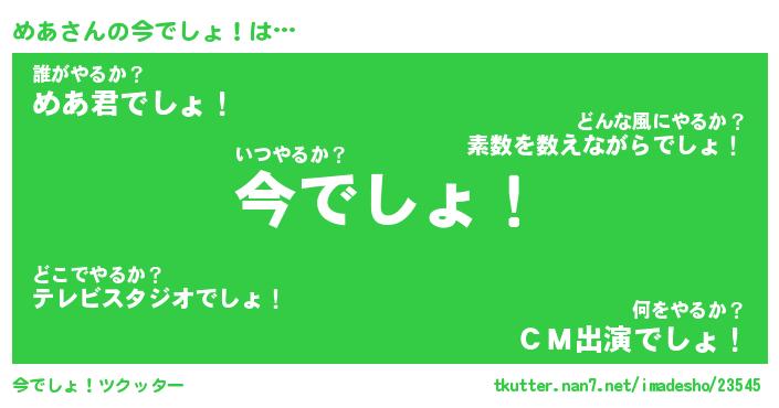 | ヘコむあだ名 | 『めあふぇ~』『なまこ酢』『めあを』 |