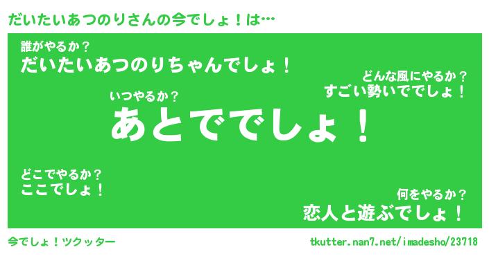 | 肩書あだ名 | 『だいたいあつのり御曹司』 |