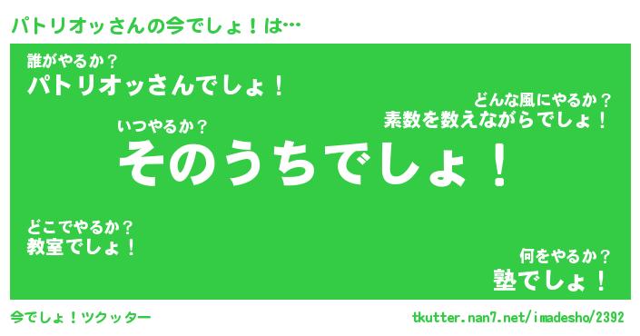 | 男性向けラノベタイトル風あだ名 | 『パトリオッの憂鬱』 |