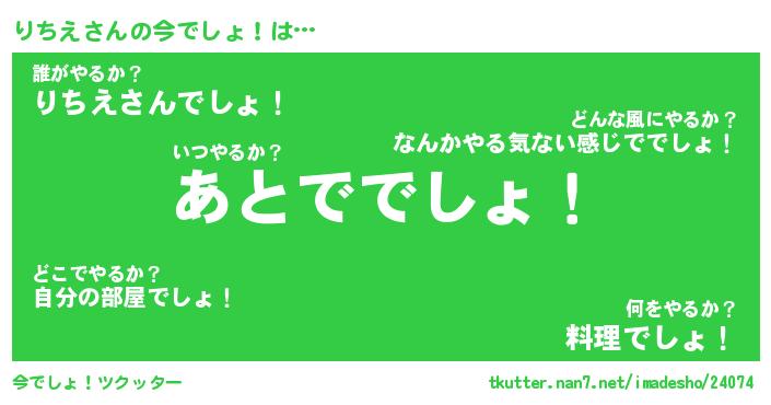 | 料理風あだ名 | 『節約★りちえと油揚げの玉子丼』 |
